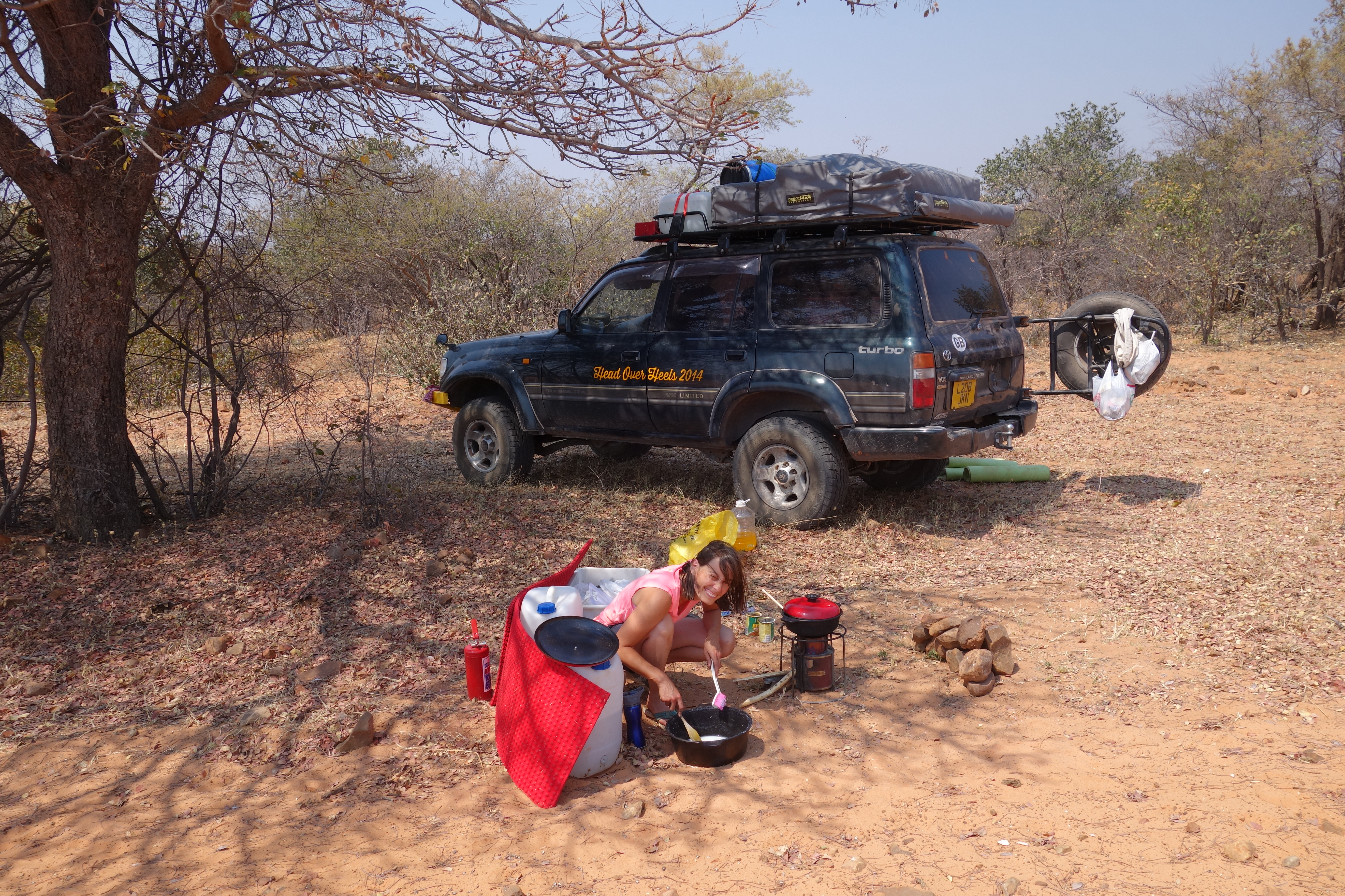 In case you can’t download the video it is very brief and shows two lovely moments that day. One when 3 adults came over to find out what we were doing when cooking lunch and then showed their support for Emma by chanting “Go, Emma, Go!” The other was when two young people, barefoot, rushed to join Emma jogging on the road. They were there for a while.